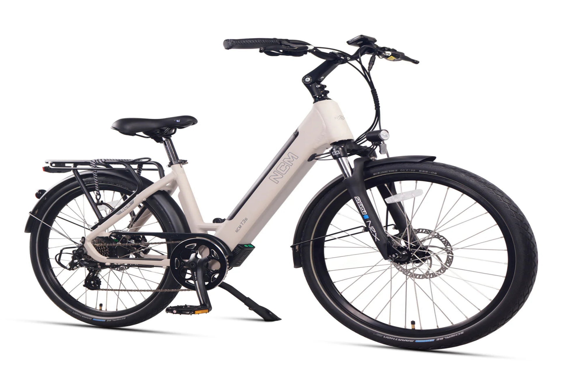 The NCM T3S is the new generation of the NCM brand, succeeding the NCM Milano. It features a reinforced fully integrated and removable battery, a sleek new design, and improved ergonomics. Whether for long or short journeys, the T3S offers enhanced comfort and control. With an upright seating position, optimized ergonomics including adjustable handlebars, and a gel-padded saddle, it’s built for rider comfort.